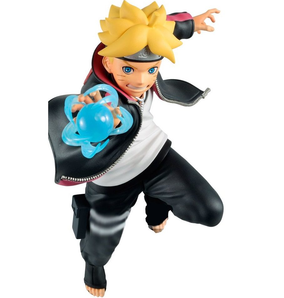 Figura de Boruto Uzumaki, en pose de acción y fabricada por Banpresto.