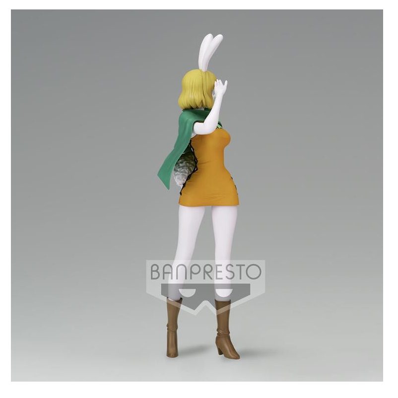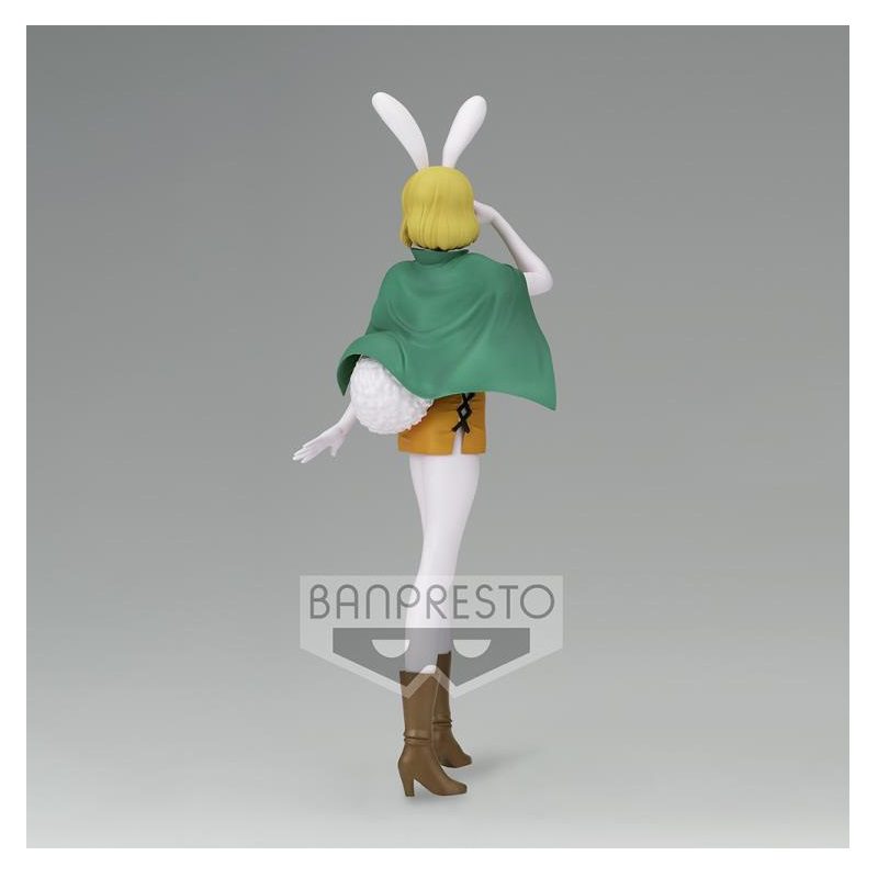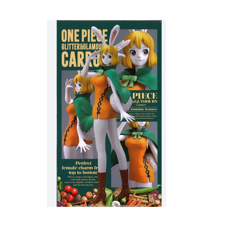 De One Piece, Carrot se une a la lÃnea de figuras Glitter & Glamours. Esta figura presenta a Carrot con un vestido amarillo y una capa verde.
